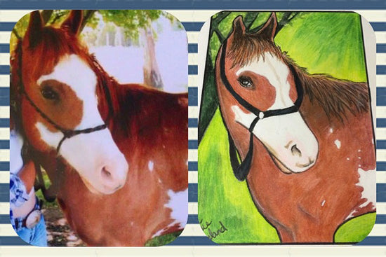 ugotjonahCustom pet portraitLove the detail and heart put into my drawings, now my daughter will never forget her past horses that she loved so dearly! Thank you for the wood burning too! Love Love…