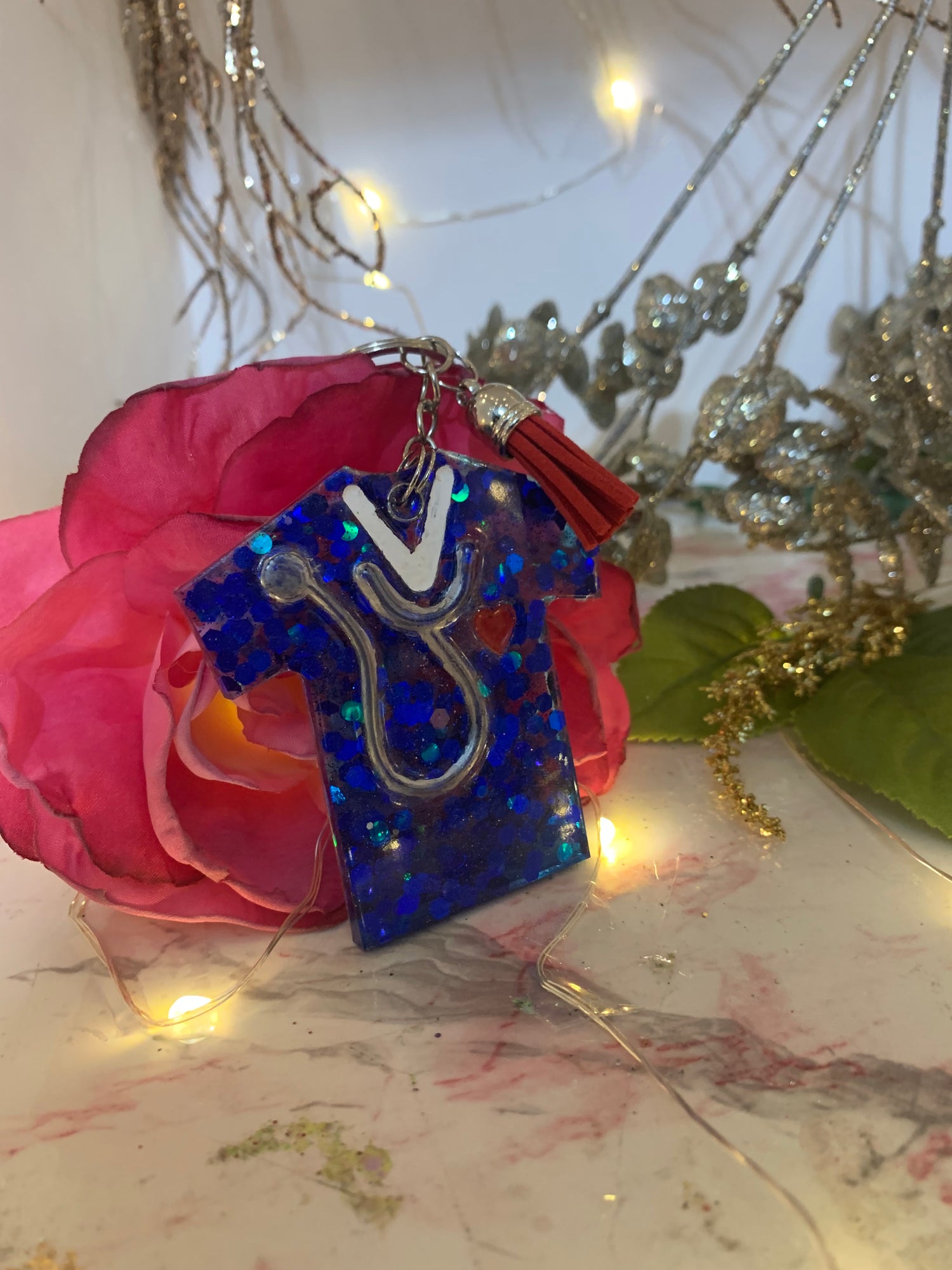 This adorable scrub top is handmade with epoxy resin, inks, foil flakes, acrylic paint, and mica powders. You have the option to add a vinyl name, date, word, location, etc. before you check out. Font will be generalized as certain fonts will not cut well nor fit on the keychain in a readable manner. If you do not message us the vinyl Color & name/date/word/location etc you will receive a blank Keychain /badge reel