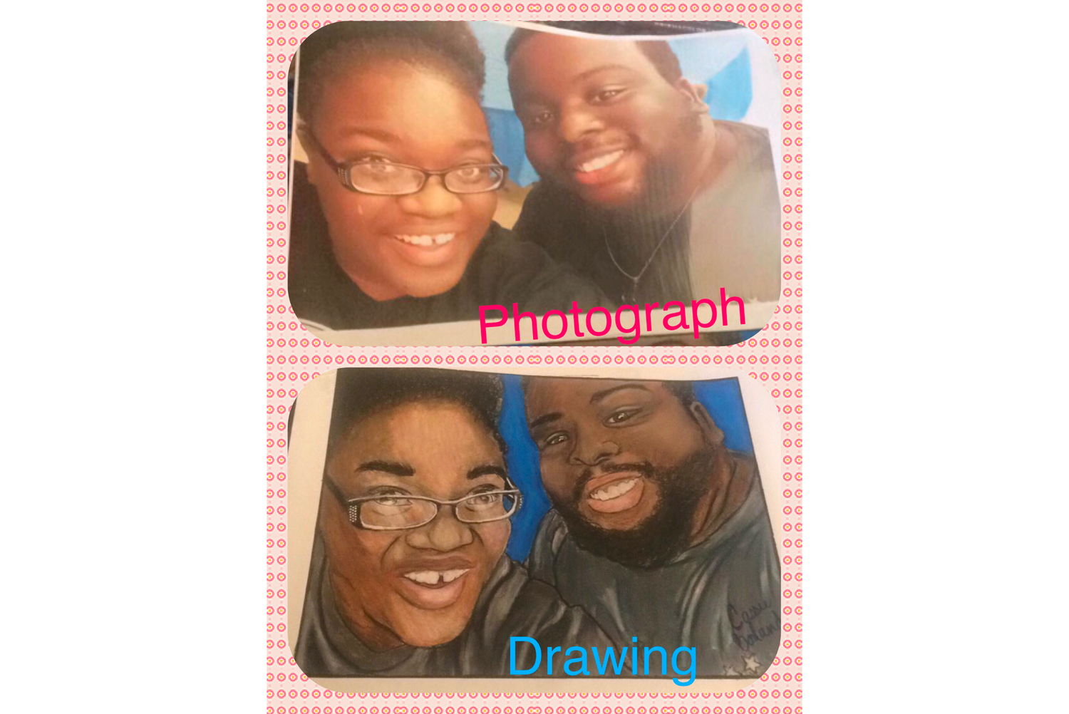 custom portrait from photograph, drawn photo of mom/dad/family, colored pencil drawing of family/daughter/son.